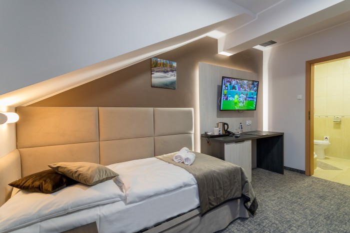 Cena noclegu obejmuje śniadanie wydawane w godzinach od 8:00 do 10:00, możliwość korzystania ze strefy SPA, podatek VAT, monitorowany, niestrzeżony parking, Internet Wi-Fi.
